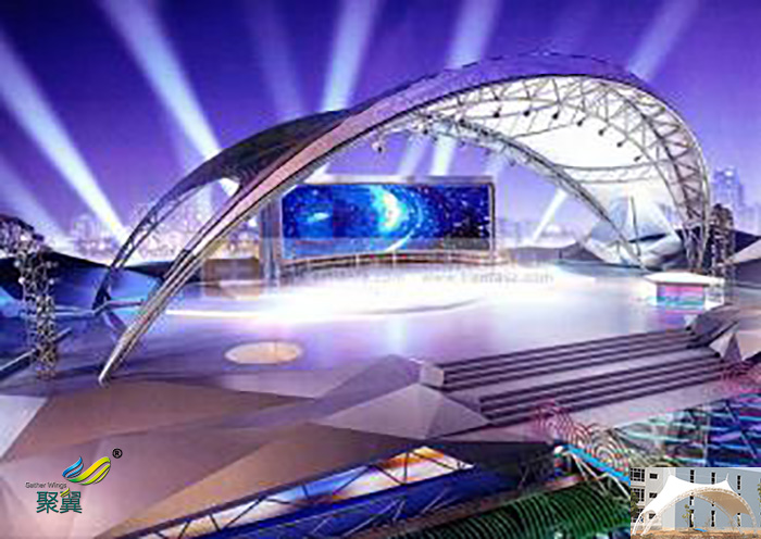 3、舞臺(tái)膜結(jié)構(gòu)經(jīng)過控制的自然光和內(nèi)部溫充可到達(dá)自動(dòng)節(jié)能的效果。可展結(jié)構(gòu)即可開敞也可閉合,它的靈活性使其能夠改動(dòng)空間的特色。