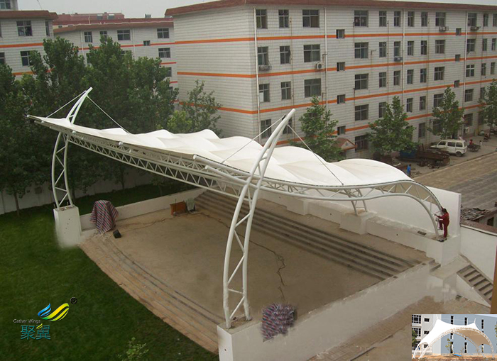 2.舞臺膜結構具有特定功用的修建都可經過立意得以表達,舞臺膜結構的共同外形表現了修建自身的天然美感。