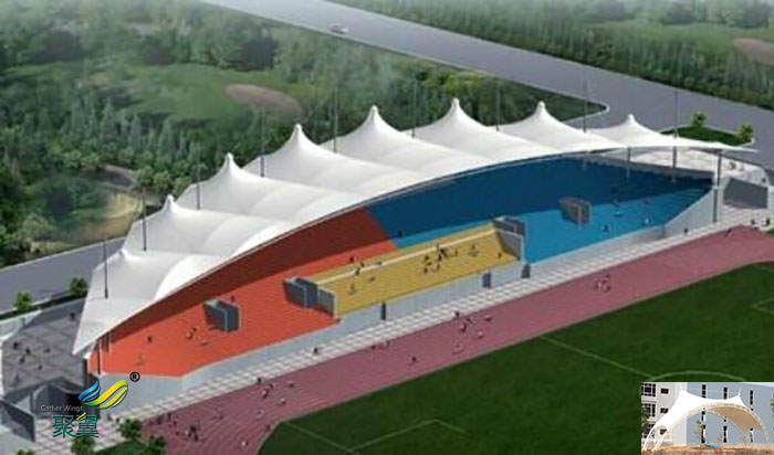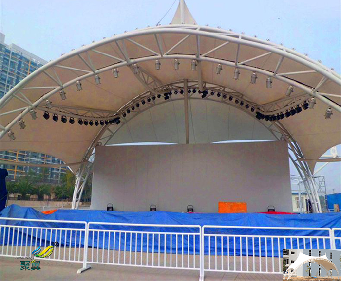 2.舞臺膜結構遮陽篷雨棚具有特定功用的修建都可經過立意得以表達,舞臺膜結構的共同外形表現了修建自身的天然美感。