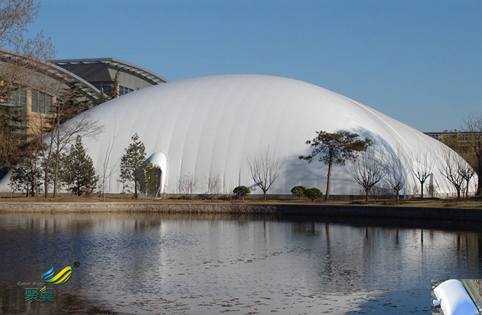 充氣膜結構有單層、雙層、氣肋式三種形式,充氣膜結構一般需要長期不間斷地能源供應。低拱、大跨建筑中的單層充氣膜結構必須是封閉的空間,并保特一定的室內外氣壓差。