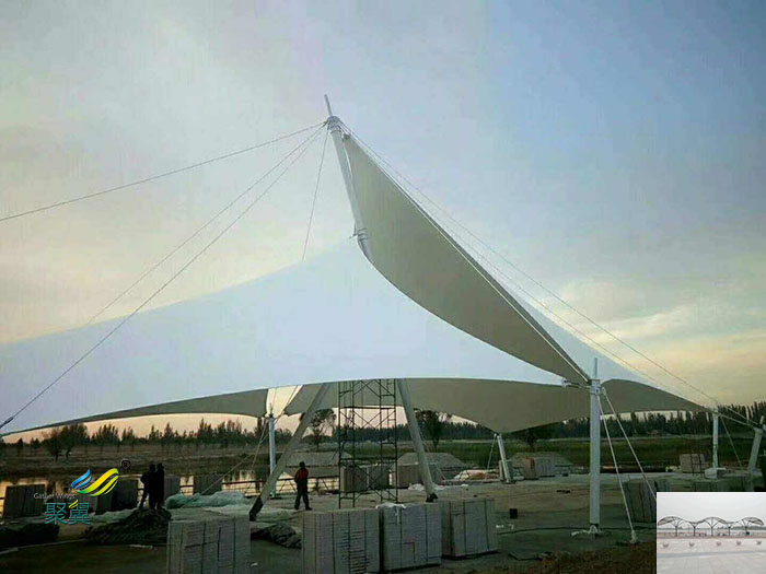 膜結構建筑輕質,張力結構自重小的原因在于它依靠預應力形態而非材料來保持結構的穩定性。從而使其自重比傳統建筑結構的小得多,但卻具有良好的穩定性。建筑師可以利用其輕質大跨的特點設計和組織結構細部構件,將其輕盈和穩定的結構特性有機地統一起來。