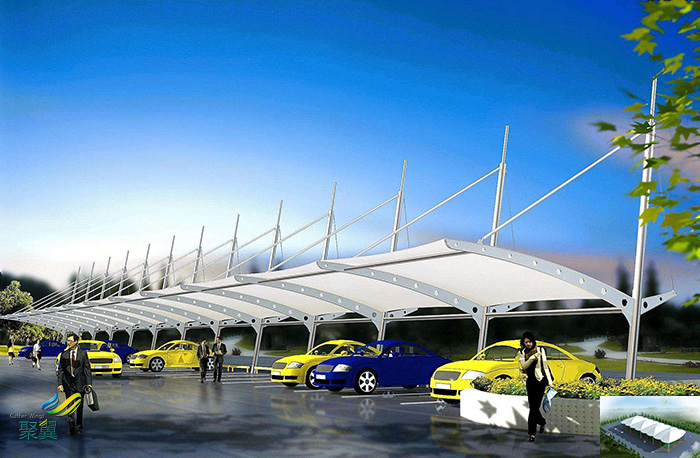 膜結構建筑中的所使用的是一種耐久用、高強度的涂層織物—膜材,由織物和涂層復合而成,具有質地柔韌、重量輕、厚度小、透光性好的優點。對自然光吸收和透射能力、阻燃,具有良好的防火、耐久、氣密等特性;表面經過氟素處理或二氧化鈦處理的膜材料抗老化性能好,具有較高的自清潔性能。