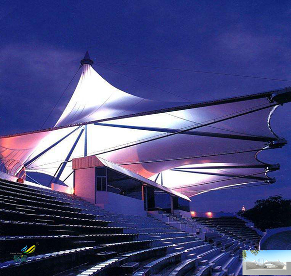 膜材料與其他建筑材料相比要輕的多,屋頂采用了膜材料的建筑物,具有強的抗震性及良好的安全性。而且,在發(fā)生災害時,采用了膜結構建筑的多功能設施及體育館,其無柱而明亮的大空間,可以用來作為臨時的避難場所、急救中心、抗災指揮部等。因此,在危急之時,張拉膜可以保護人們的安全。