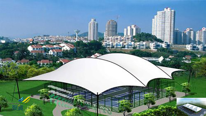 膜結構建筑柔性,張拉膜結構不是剛性的,其在風荷載或雪荷載的作用下會產生變形。不同的膜材的柔性程序也不相同,有的膜材柔韌性極佳,不會因折疊而產生脆裂或是破損,這樣的材料是有效實現可移動、可展開結構的基礎和前提。