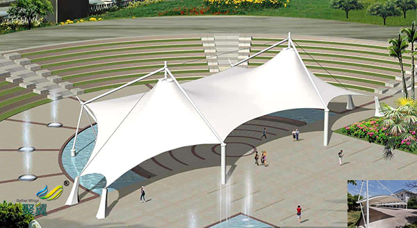 通常膜結構建筑位于市區內,有的建造在繁華的鬧市區,特別是用于音樂、娛樂等大型文化活動場所,人們即不希望外部噪音傳入室內,干擾室內活動,也不希望室內聲音擴散出去,為此對建筑的隔音提出較高的要求。單層膜隔音僅有10dB左右,因此,單層膜結構建筑往往用于對隔音要求不是太高的活動場所,或者通常用巧妙的設計、構造等手段來提高其隔音性能。目前有人提出增加膜材料的質量可提高其隔音性能,但真正能達到令人滿意的性能指標,尚需待以時日。