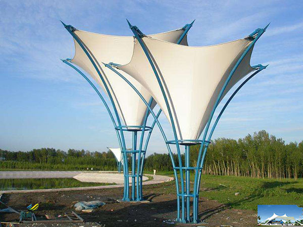 膜結構建筑張拉膜膜結構中所用的膜材、拉索、鋼結構都是在工廠加工制作的,可與基礎部分同時進行,然后將加工好的構件運送到現場進行安裝定位,然后張拉膜材即可,對于施工現場的要求較低,這也大大縮減了施工周期。
