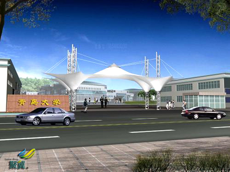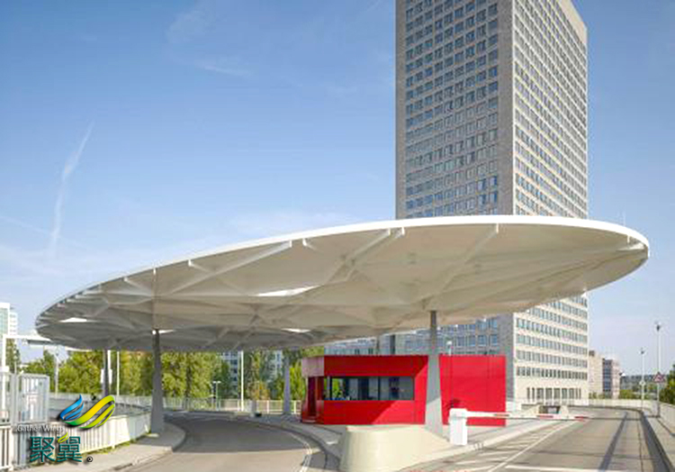 膜結構過道雨篷面料一般膜結構用料選用進口及國產PVC涂層及PVDF膜材。  膜結構過道雨篷膜布面料獨特在:(有自潔功能)易清洗、讓面料持久如新、抗老化,防凍,防雨,耐高溫,抗壓等    膜結構過道雨篷耐用:由于高強度的膜材出現,再加上張拉技術的應用,使膜結構車棚抵御風雨的能力是一般雨蓬之類不可比擬的。有的車棚采用永久性膜材,可使用三、四十年。特別是遇到劇烈的暴風雨天氣,膜結構建筑巍然不動,毫發不損。