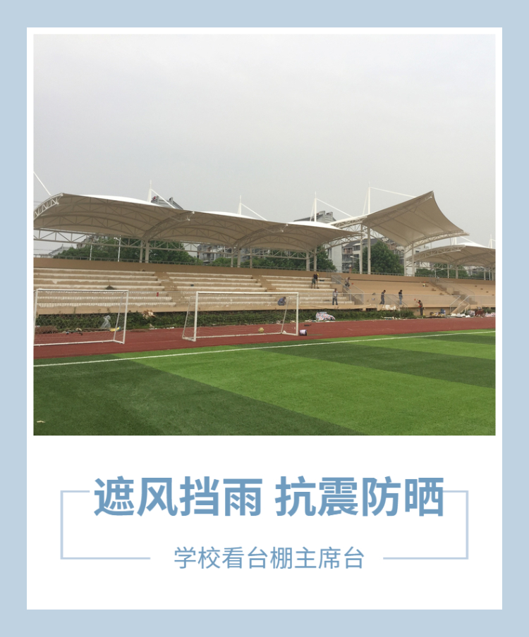 看臺棚膜結構的曲線曲率是其他建筑難以達到的,能充分體現(xiàn)自然美,藝術美,技術美,而且與周圍建筑環(huán)境相容性很強,大跨度一樣完美展現(xiàn)設計之美。