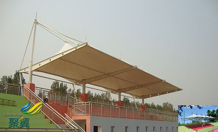 2、膜結(jié)構(gòu)體育看臺具有獨(dú)特的光學(xué)性能:白天入射光線成為自然溫射光,防止眩目,無陰影,光線均勻