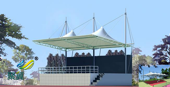 膜結構體育看臺不僅滿足了造型的多樣性、夸張性,而且也完美的解決了對于大跨度結構用鋼量大的問題,往往對于大跨度的結構來說,起跨度尺寸就代表著需要大量的鋼結構來補足,然而對于膜結構來說,其特有的延展性和超高的的抗拉強度完美的解決了大跨度帶來的困擾,大大的節約了施工成本。其各種顏色的配比也使得其與周邊環境多了更多的搭配方式,膜結構常用膜材特有的自潔效果防水效果,降低了后期對于主體結構的維護費用。膜材質保年限最低10年,高的能達到25-30年的材料質保,這也使得設計成永久性建筑的設計初衷得到了完美的結合。而且其相對于鋼筋混凝土和純鋼結構來說還有一明顯優點---施工周期短(自重輕、結構簡單)。膜結構體育看臺另外膜結構還有一優于其它結構的顯著特點——半透明性,白天能將陽光漫反射到結構以下,能完美的起到遮陽效果,還不影響其下方正常使用;在夜晚可以逆光照射,使得膜材表面發光,造就一個不一樣的視覺盛宴。