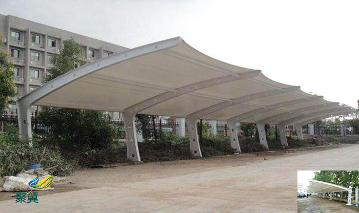 3、膜結(jié)構(gòu)車棚材料組成:鋼結(jié)構(gòu)+膜材料+附件等。