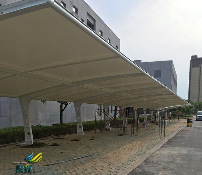 無錫膜結構車棚造型和色彩的多樣性作為一種柔性材料,其在建筑上的造型變化多端,是其它材料所不能比擬的,因此也造就了無錫膜結構車棚多變的特性,充分體現出建筑形體塑造力和輕盈、飄逸的動感曲線外觀。