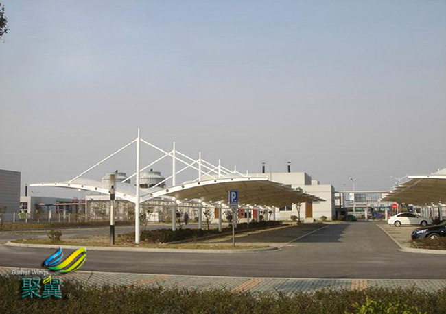 1.浙江溫州雙開停車棚簡易方便,不像傳統材料那樣笨重,在近幾年廣泛應用于我國沿海一帶城市。