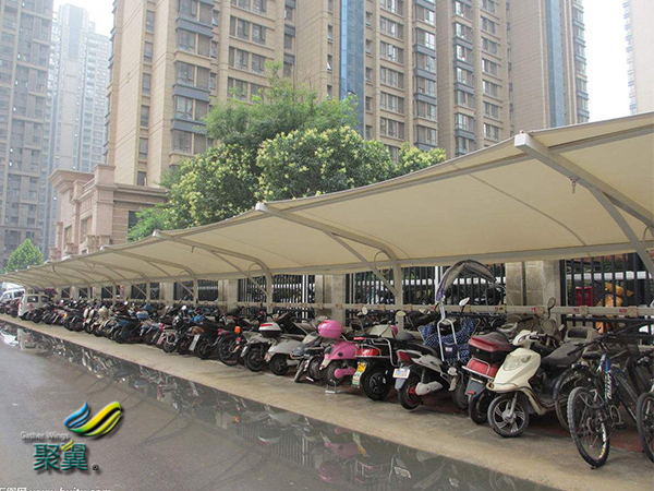 四、藝術性:一般膜結構車棚的設計,會結合建筑師的創意,利用色彩學為依托,造出傳統建筑難以實現的曲線及造型,如果建筑師的設計思維夠創新,往往車棚的藝術性較能得到體現。