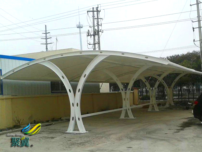 第四點:膜結構車棚美學特征。美學特征雖然主要跟它的外觀分不開關系,但實際上也是會影響停車棚的質量的。因為膜結構表面的弧度是直接跟它的曲率設計分不開關系的,如果曲率設計不合理的話不僅會影響它的外觀特征而且對它的剛度也有一定的影響。