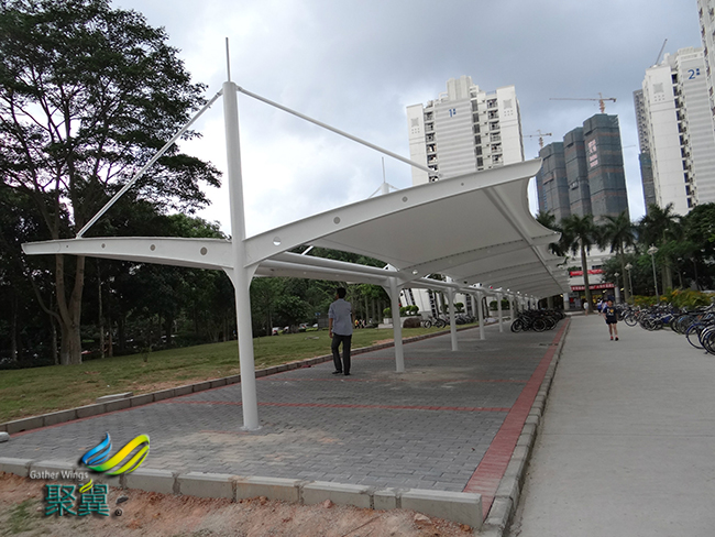 膜結構車棚等膜結構的運用范圍越來越廣,不管是商城、交通設施或園林景觀等都使用膜結構。