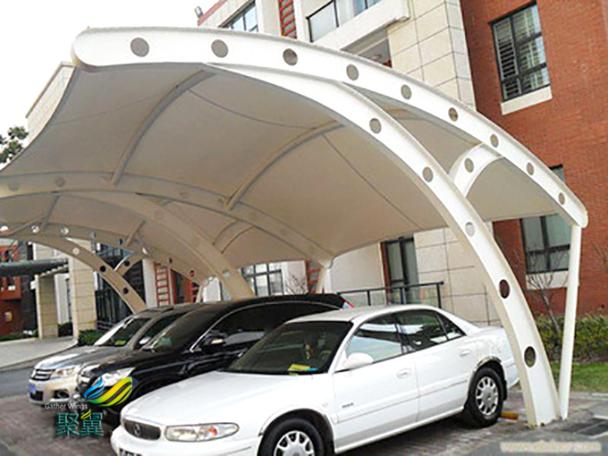 由于膜結構車棚結構比較簡單,材料加工、現場施工和安裝也不太復雜,所以日漸成為建筑行業新寵,在上海聚翼的客戶群中,眾多城市的政府、企事業單位、學校、醫院等都愿意選擇這種既環保又美觀的膜結構車棚。