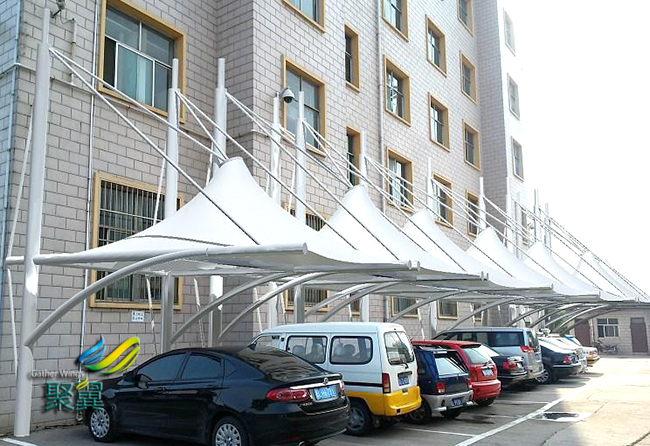 4、在制作膜結構車棚時要加強棚頂部強度,給人們一種寬敞明亮的感覺,且停靠車輛時也比較輕松方便。     聚翼小編-小單