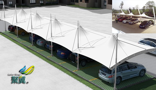 柔韌性,透光性,防水性均好,膜結構車棚施工裝置便利,但自潔性比Teflon差,可焊性不良,拼接較困難。最近有些出產廠商聲明其硅酮產品在上述兩個方面的功能已得到改進,如果這種說法被實驗及工程實踐所證明,硅酮將可能成為另一種優秀的永久性膜結構車棚膜材涂層材料。