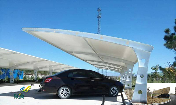 膜結構停車棚輕便性:重量輕,絕對保證棚下人和物的安全。