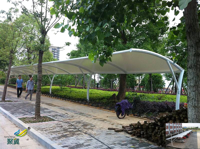 2、非機動停車棚具有更大跨度的建筑空間。由于自身重量輕,膜建筑不需要太多內部支撐面。
