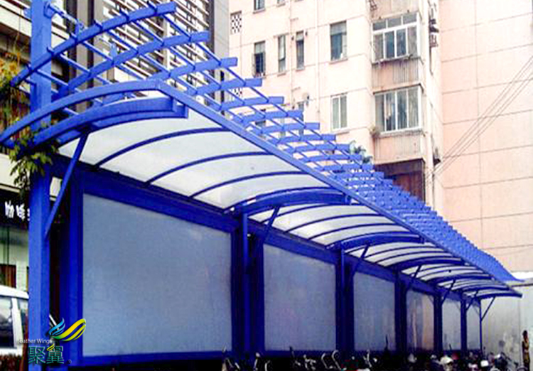 自行車棚車棚是一種比較新型的車棚,自行車棚車棚比一般的車棚要實用,而且在很多方面都占有一定的優勢,這種車棚在外觀上就比較好看,在質量上更是有一定的優勢,自行車棚車棚所使用到材料都是比較好的,所以自行車棚車棚的質量也非常好,這種車棚在使用性能上也很好,可以有效的保護車輛不會受到日曬雨淋。