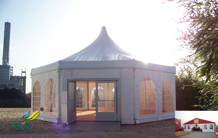 篷房 它由基原可移動框架和篷布組成,框架一般有合金和鋼為主要部件,拆裝十分靈敏便利,貯存便利,具有體積小,易運輸等特性。篷布是篷房十分重要的部件,它的好壞直接影響部篷房的安全性,同時也與活動緊密相關,因此選擇高品質的篷布十分重要。