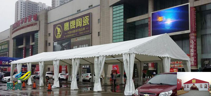 篷房的優點:透光性:膜材料具有透光性能,柔和的光線進入室內不僅使人們在室內工作如同室外,體會到親自然的感覺。而且白天不用照明可滿足室內采光的需要,節約大量的電能耗。即環保又控制了運營成本。