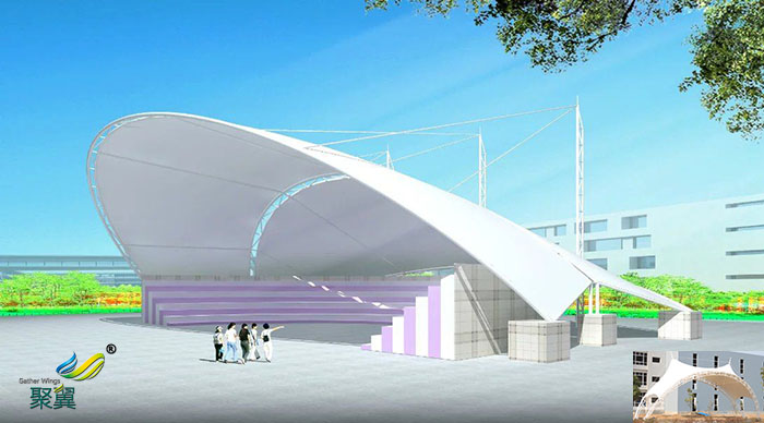 • 天津張拉屋頂舞臺雨棚遮陽篷膜結構搭建工程設計