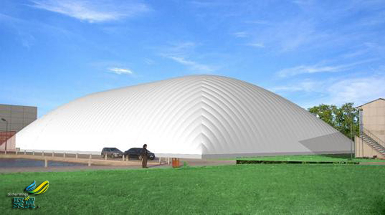 氣承式膜結構(索膜結構)充氣機械系統:對充氣膜結構,機械系統是必不可少的組成部分,要提供充氣動力,是膜面逐漸膨脹成穩定形態;另外,維持正常氣壓變化范圍內膜面穩定工作的動力與控制。