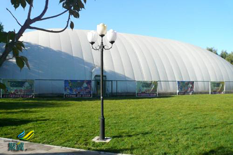 其實最大的區別就是材料的問題,氣承式膜結構(索膜結構)方案經常對比的莫過于彩鋼瓦、陽光板、篷布等,通過對比其材料的性能、功能、使用壽命等方面進行對比。氣承式膜結構(索膜結構)膜結構材料的自潔性、防火性、抗壓抗拉對比都能夠清楚地知道它們之間的差別。
